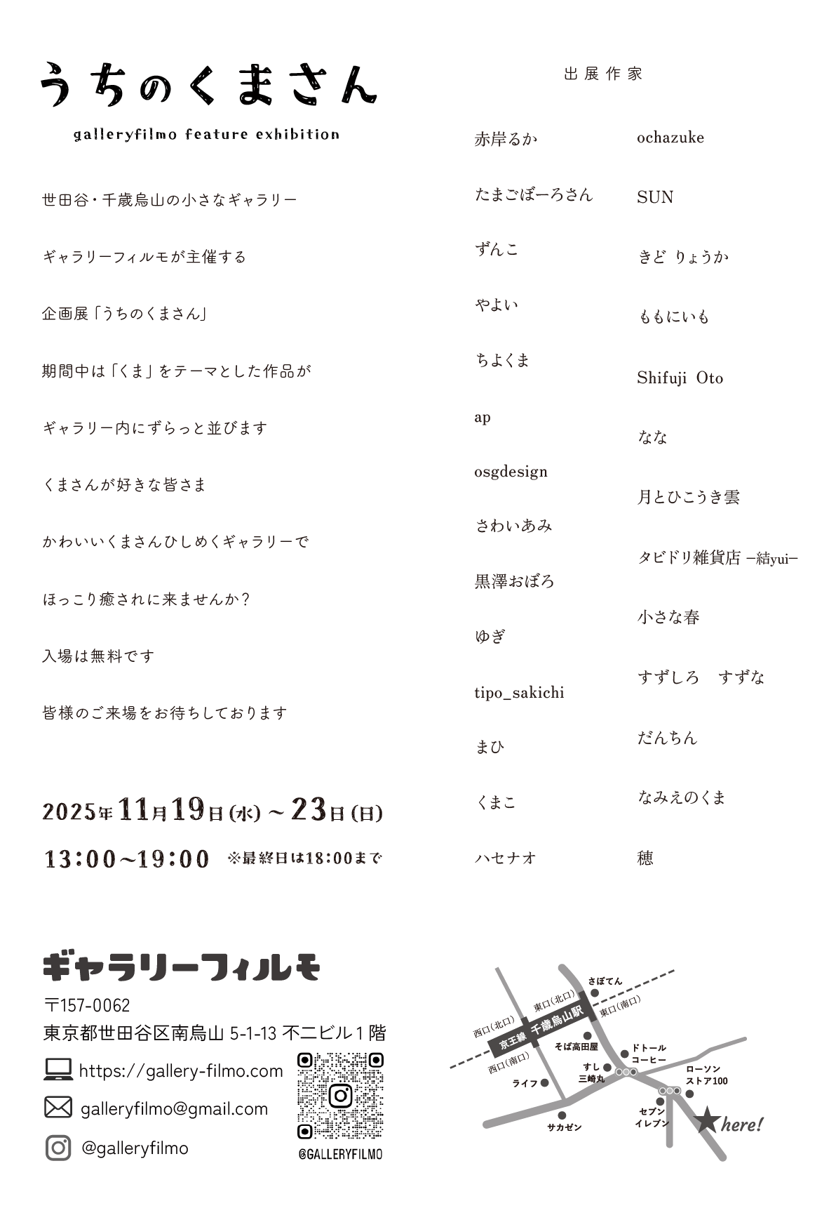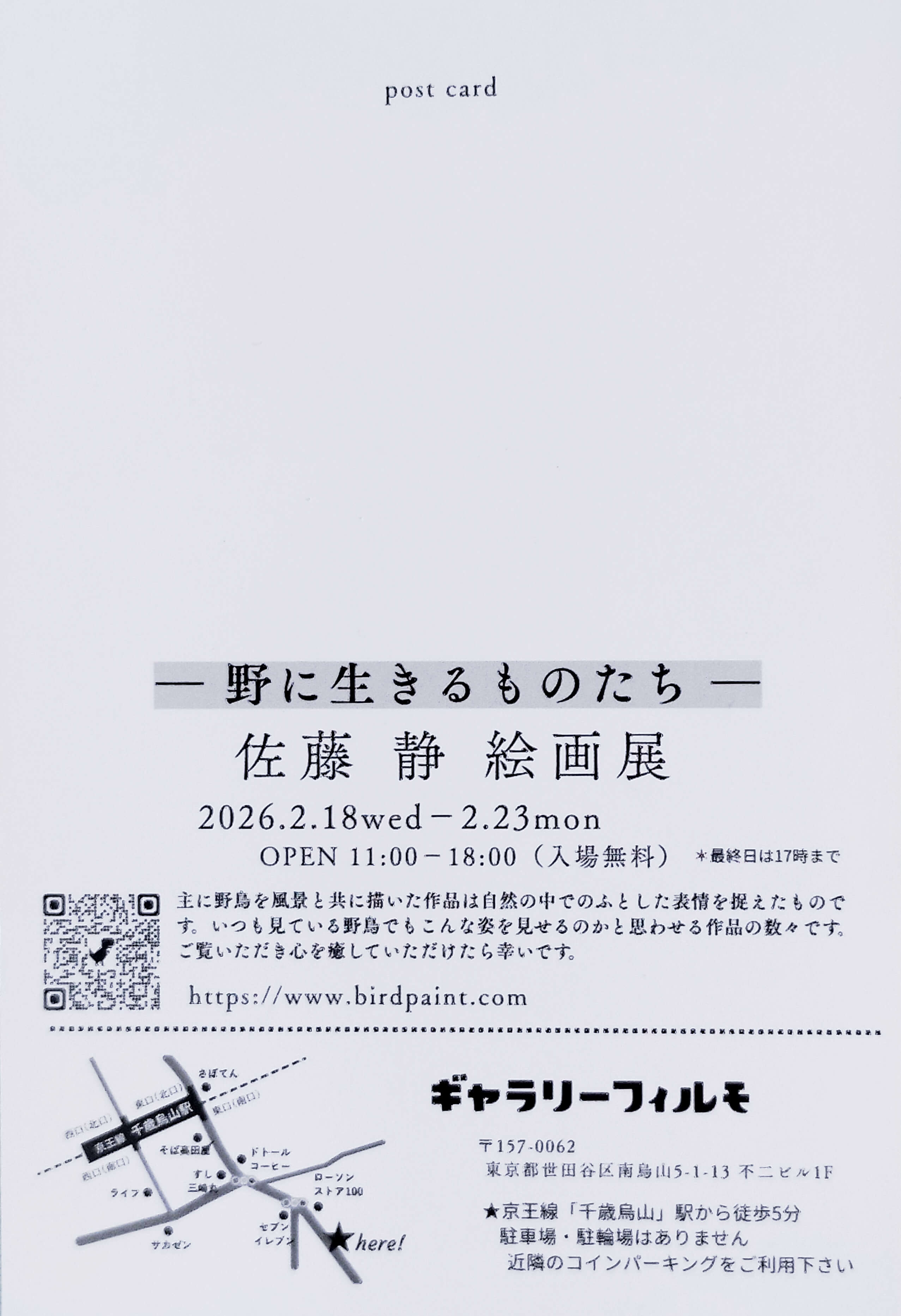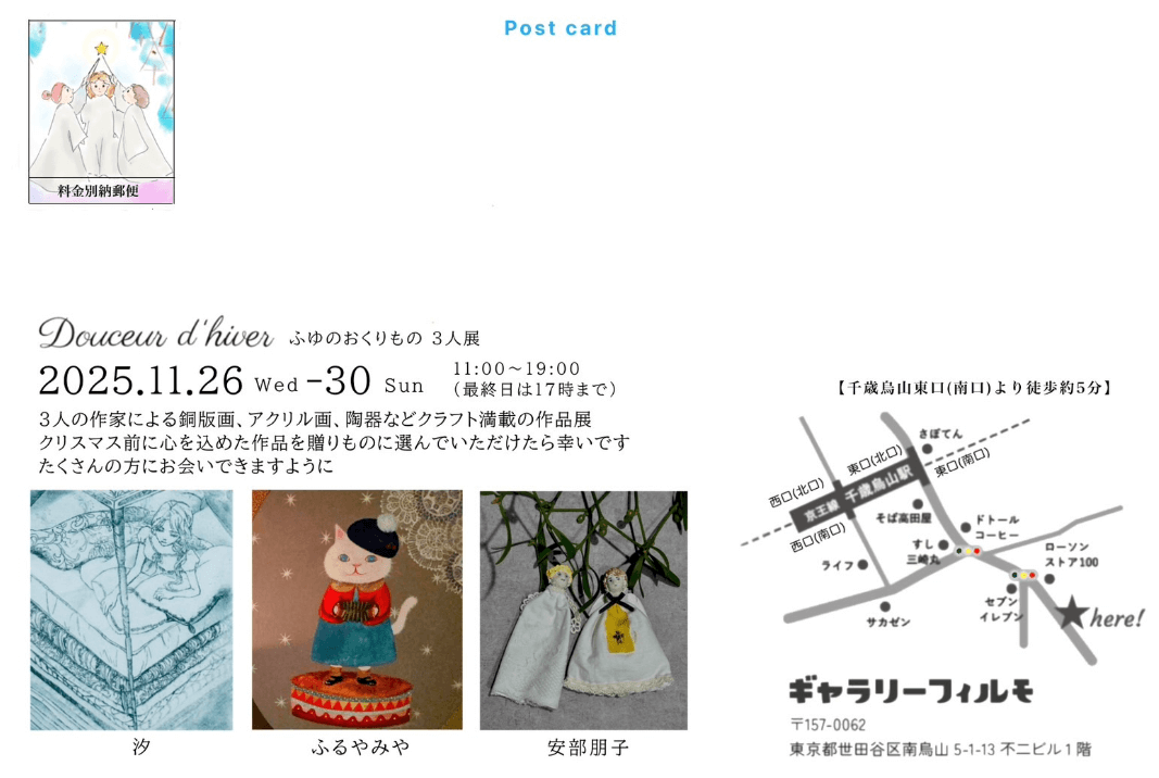 千歳烏山の街の小さなギャラリーとして、写真に限らず、絵画・クラフトなどのアート作家さんの発表の場、人と繋がれる場になれば嬉しいなと思います。